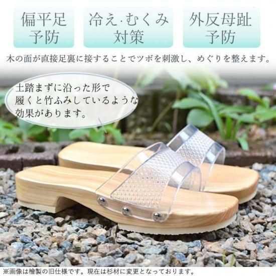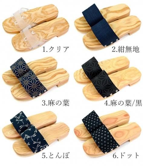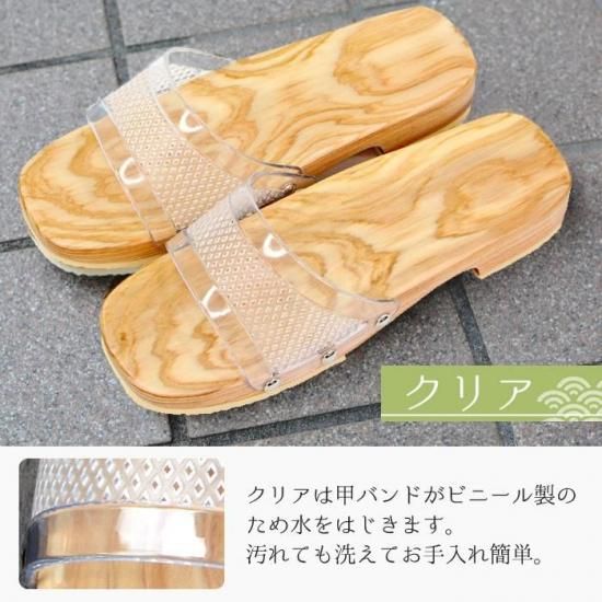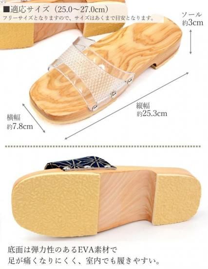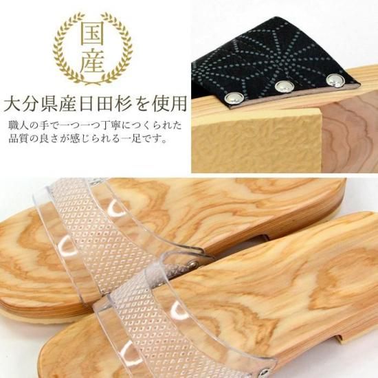 ■素材:[台]大分県産日田杉、[バンド]クリア…ビニール、和柄生地…綿(日本製プリント柄)、[底ゴム]EVA